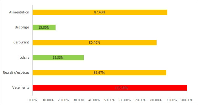 Le but : Avoir une vision rapide des rubriques où une surveillance doit être effectuée et le jeu de couleur mentionne immédiatement les top dépenses.
